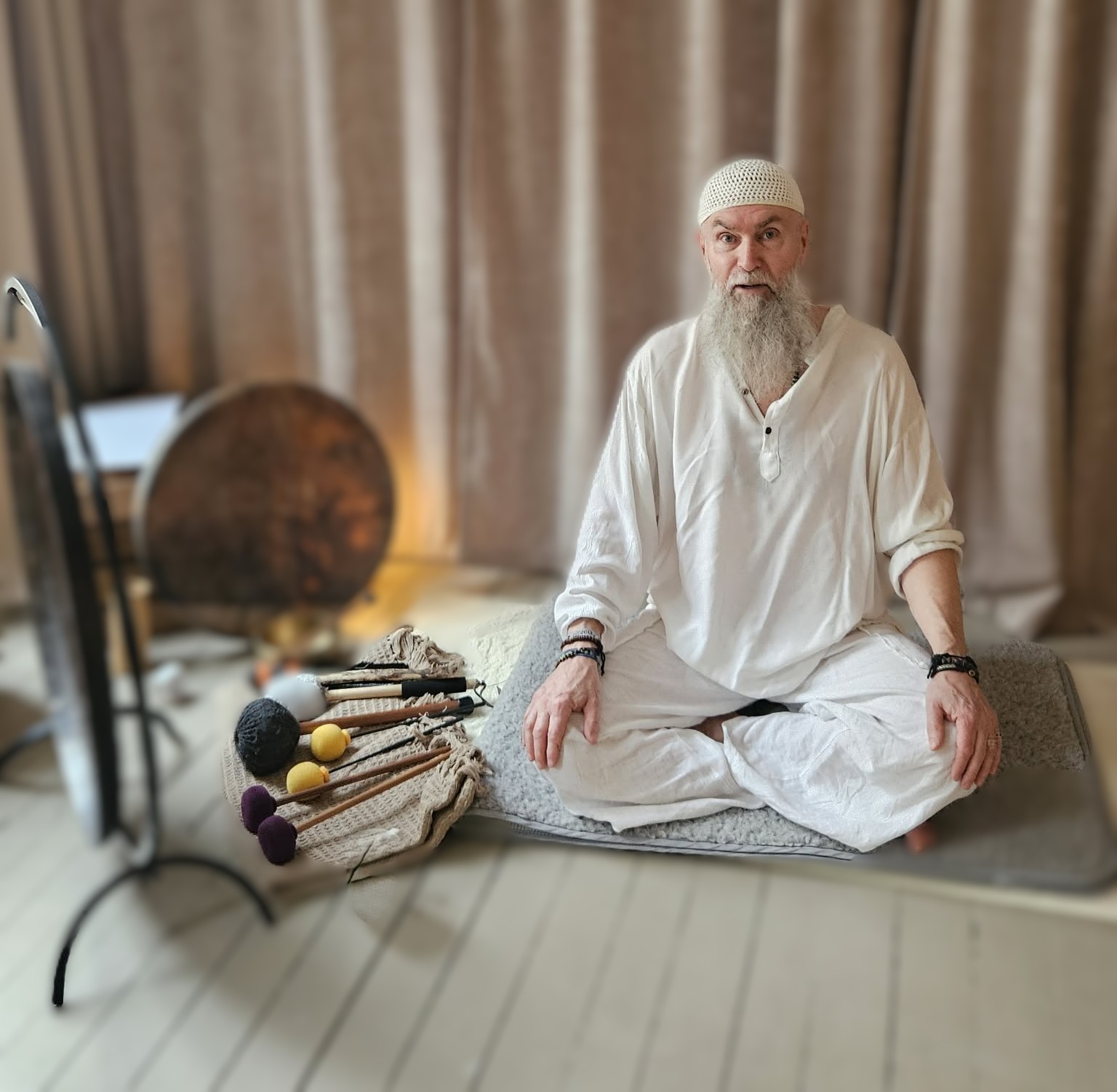 Lars is a KRI certified kundalini yoga teacher, gong player, gong nidra teacher and gong therapist, with the motto that life should flow freely and the body is the vessel of life.